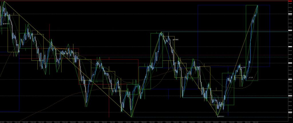 東京時間、BOJで下値を試したが反発。欧州時間、植田総裁記者会見後に16時ピンバー高値抜けでロング、翌日早朝に決済。