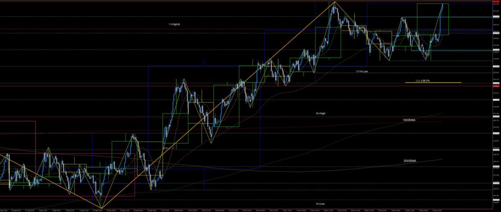先週高値戻り売りは2週前安値にサポートされ2番底から買われてBOJで急騰し一気に11月高値まで上昇する結果となりました。