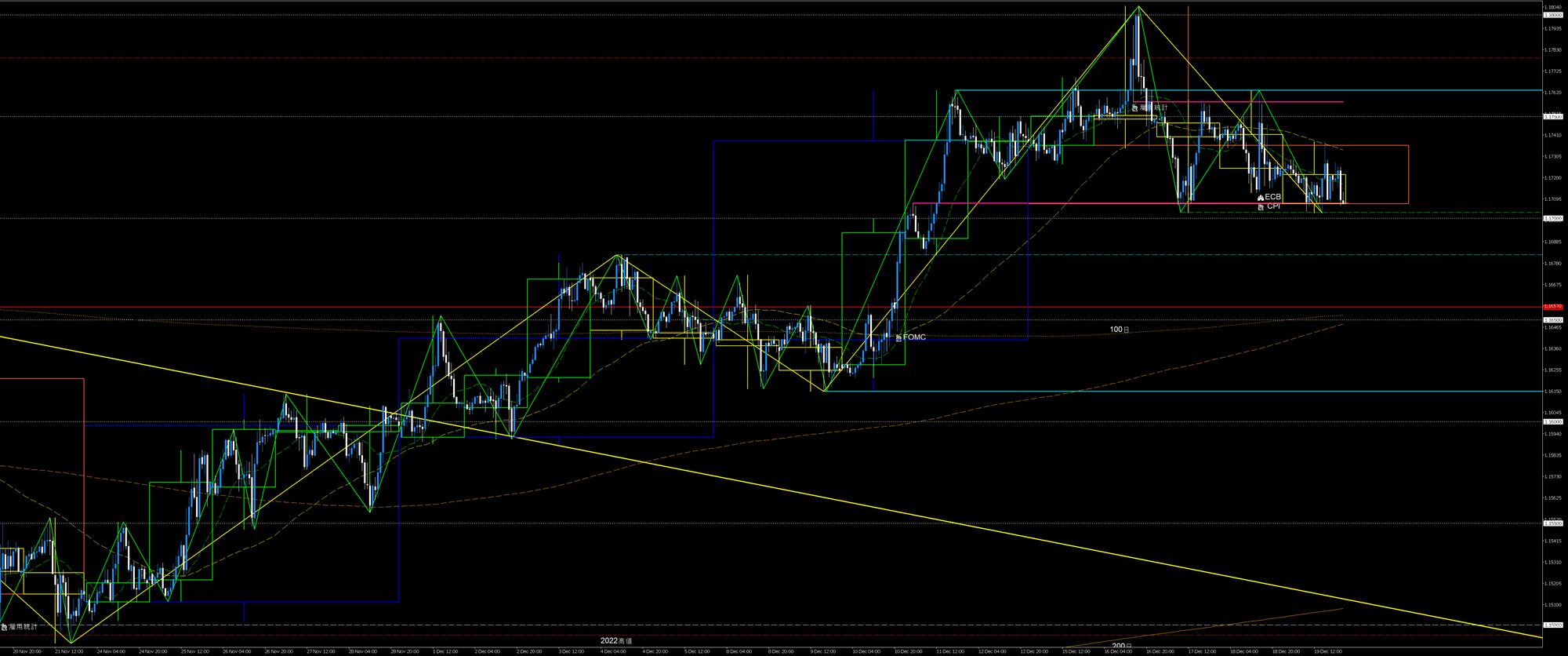 日銀は市場予想通り0.25%利上げ、植田総裁の記者会見に注目が集まりましたがタカ派的発言はみられず円売りが進行。11月高値まで上昇し200pipsの大陽線となりました。