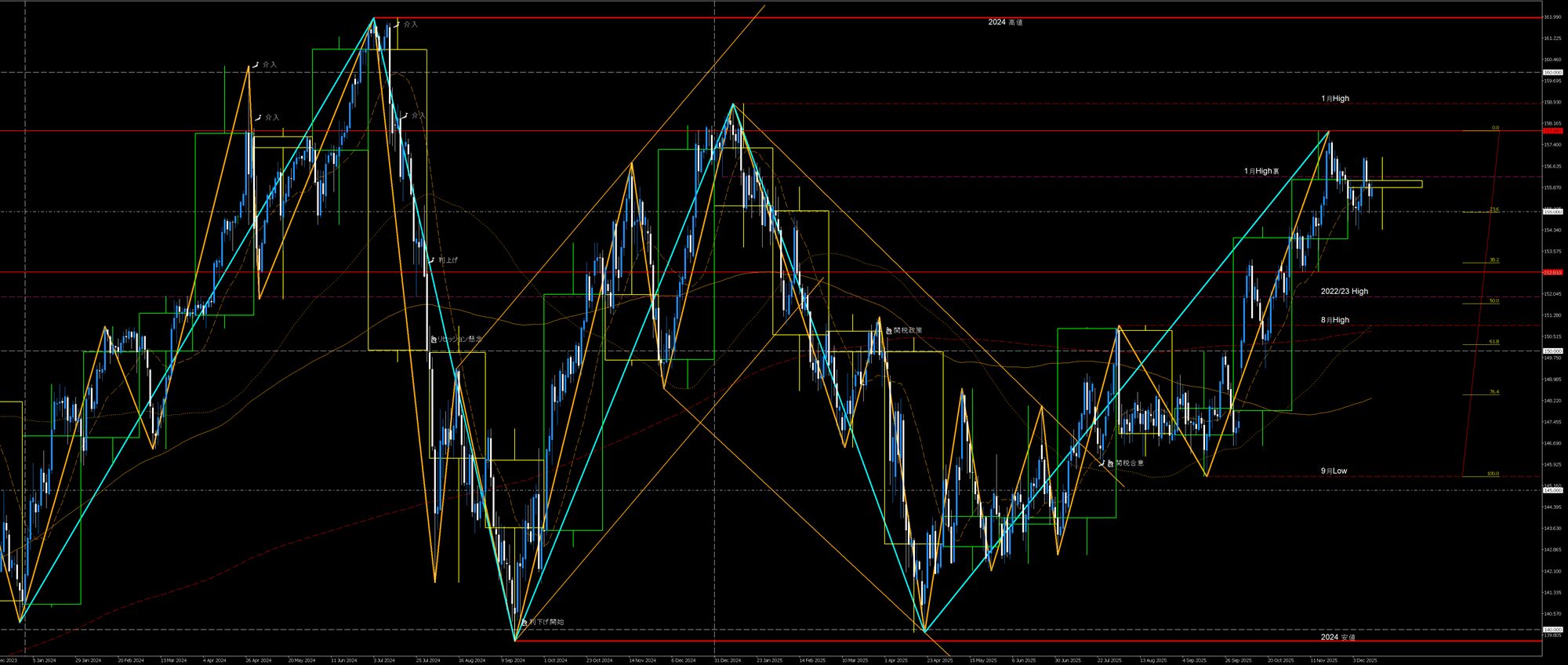 - 火曜安値上昇波を押し目買いロング ※1月高値裏に注意