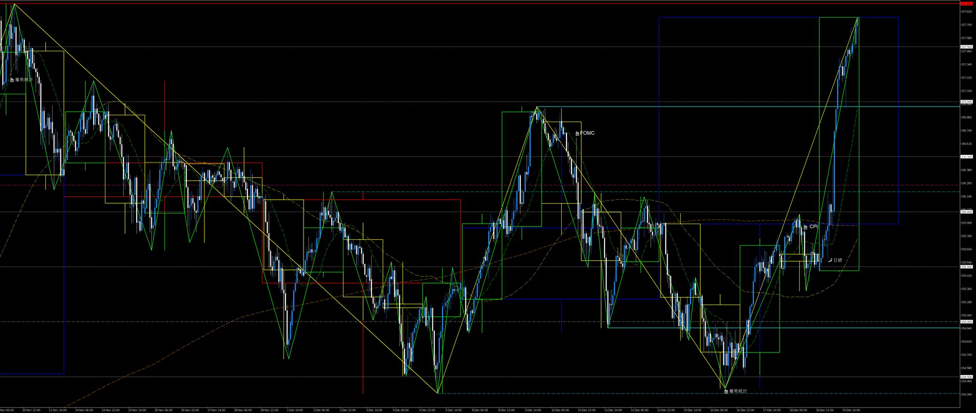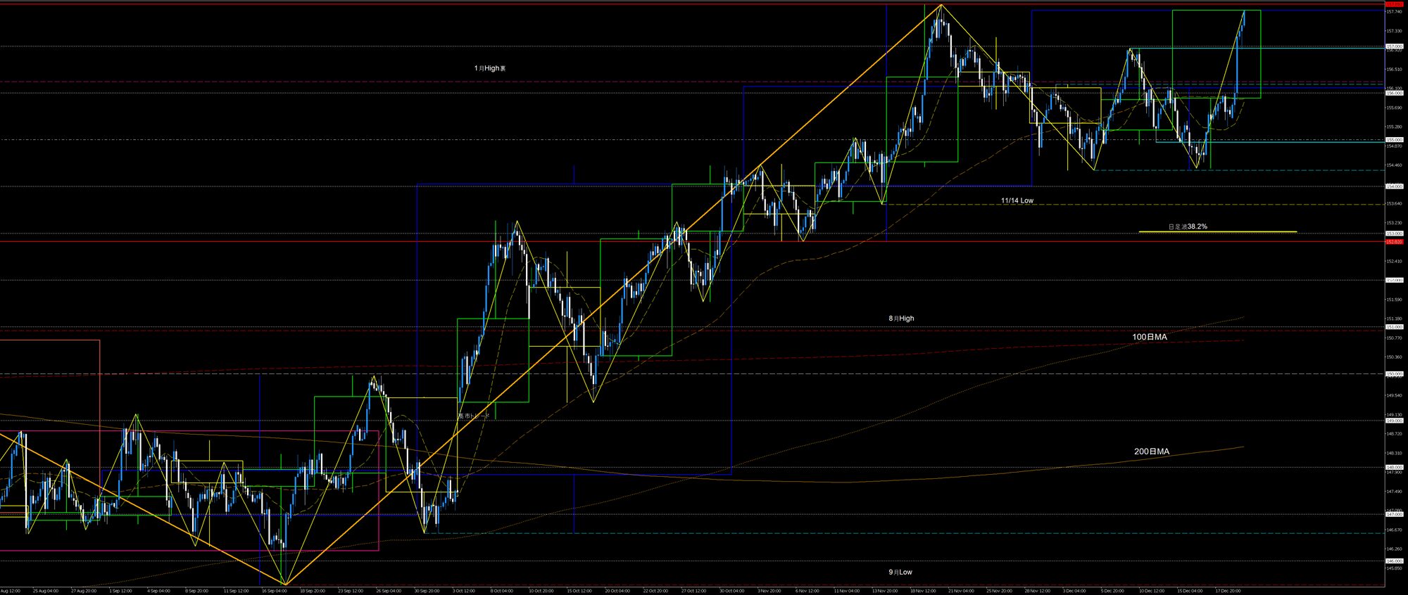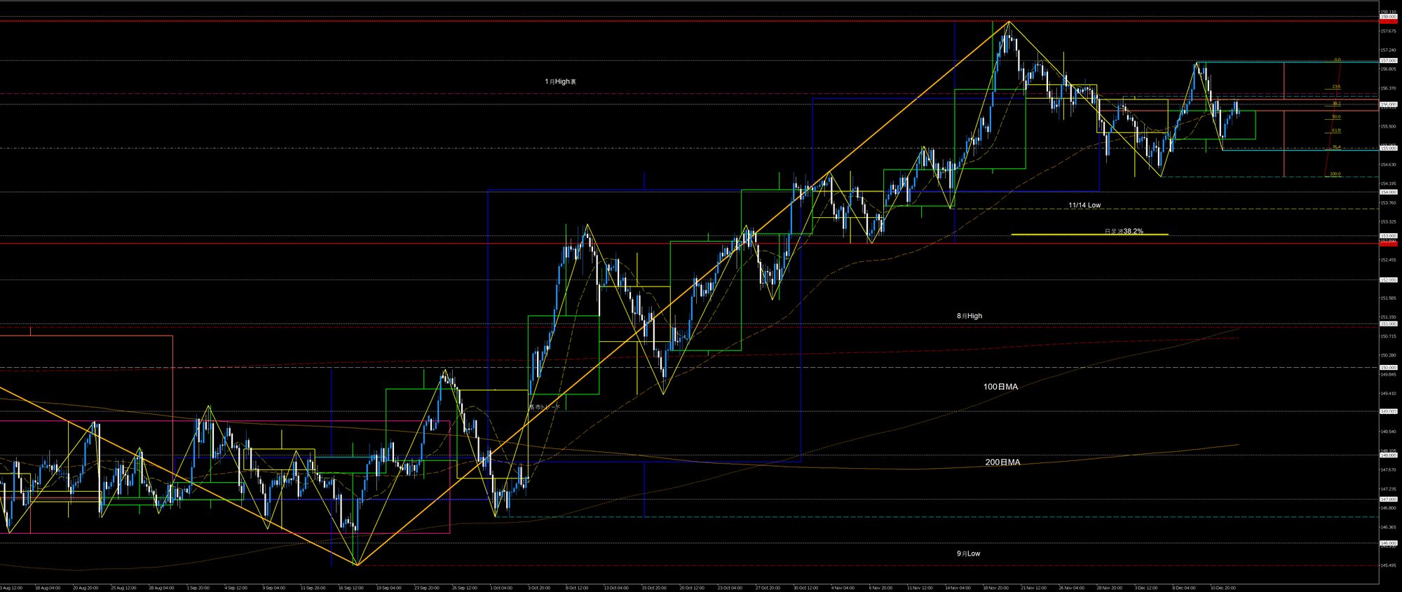 155円のサポート VS 11月高値下降波の先週高値戻り売り