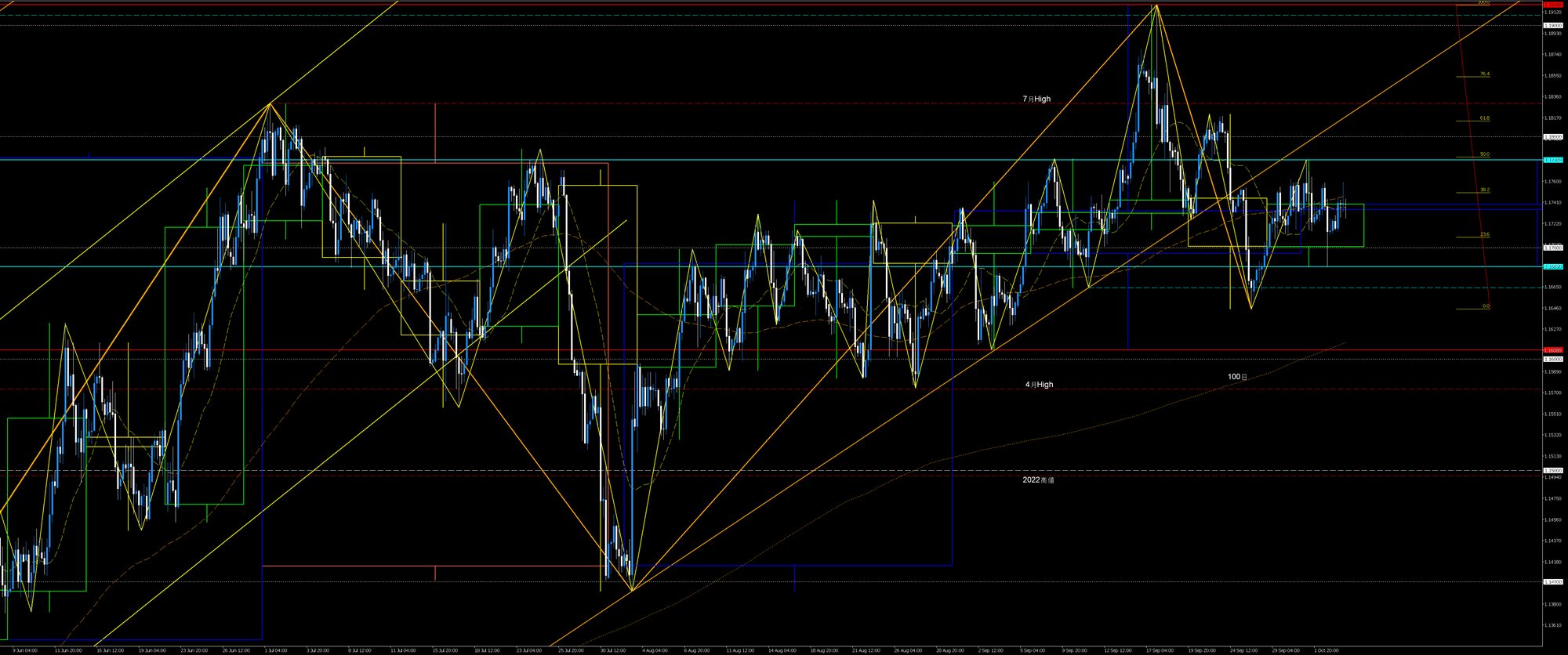 - 9月高値下降波の戻り売りをショート ※100日MAの反発に注意