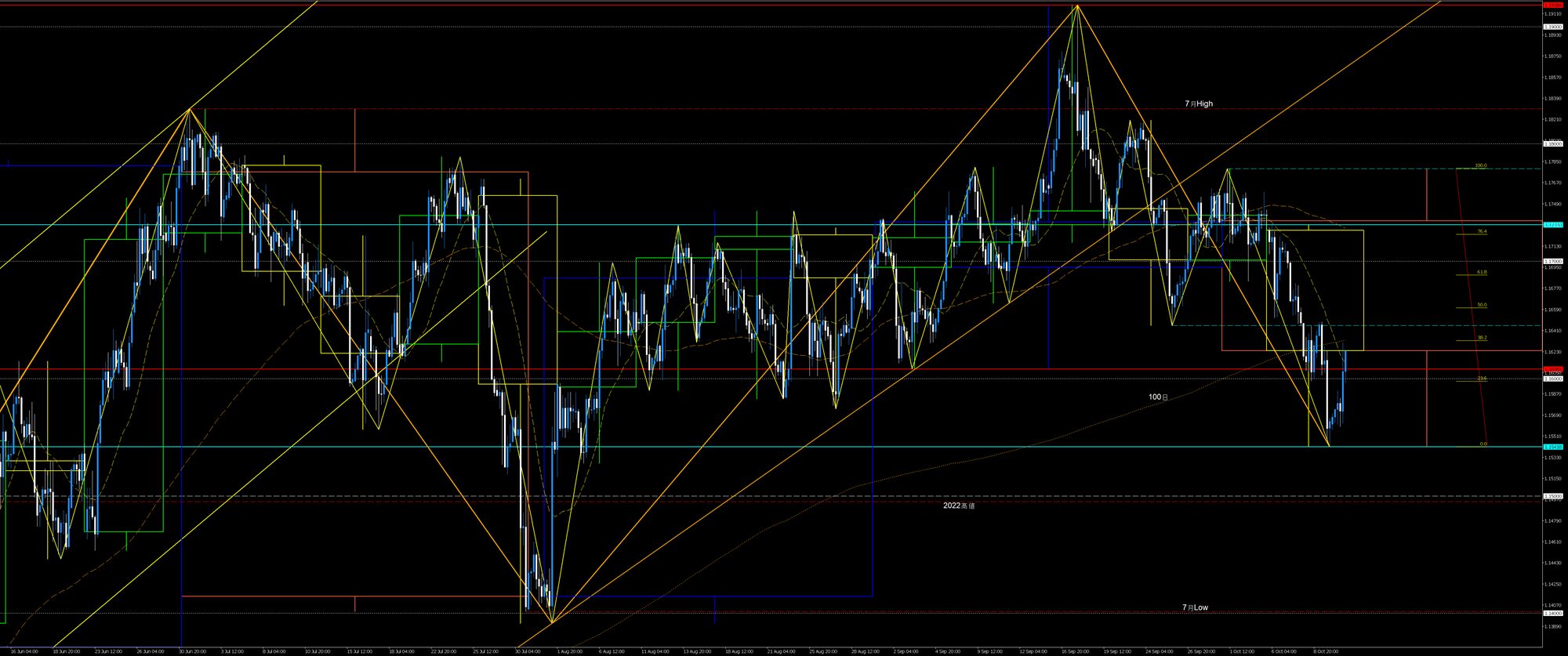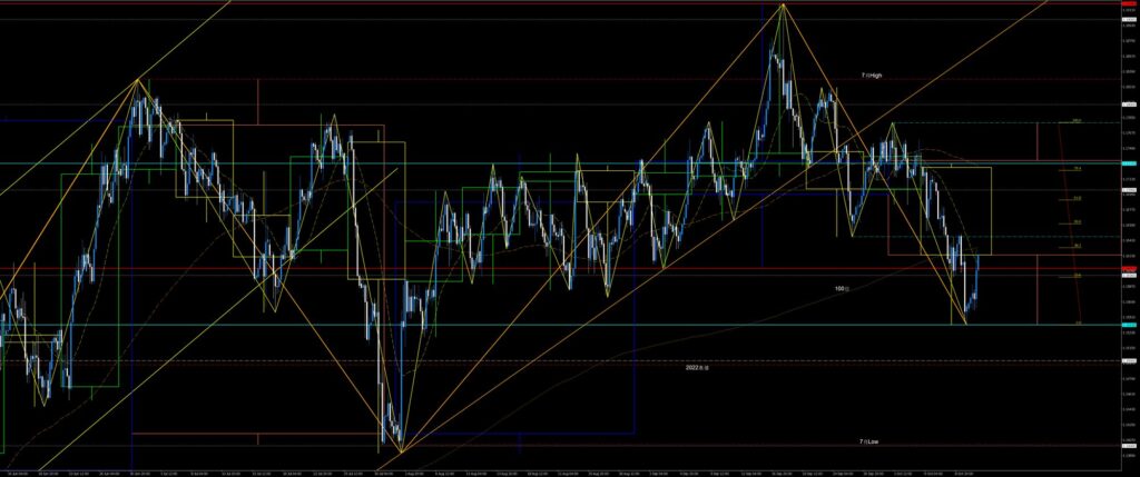 - 9月高値下降波の戻り目崩れで7月高値へロング