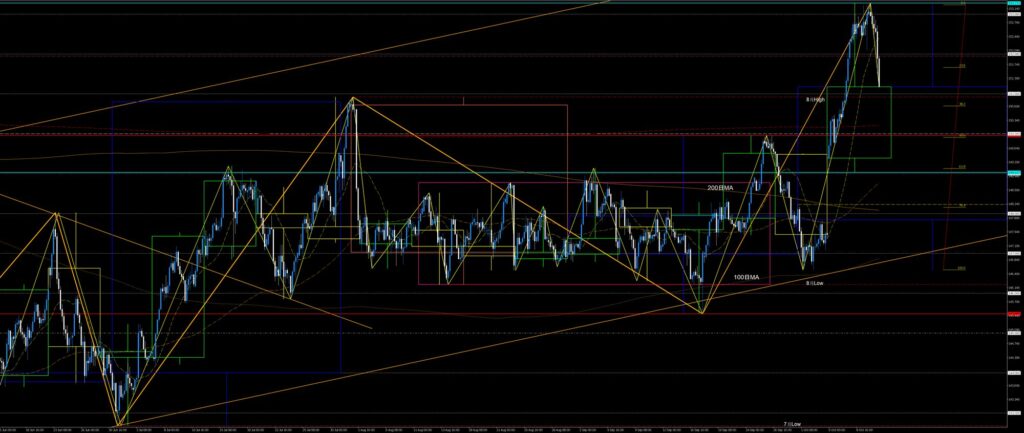 先週の下落で方向感が失われたため8月安値+100日MAでの値動きを見極めてトレードを具体化していく方針でした。