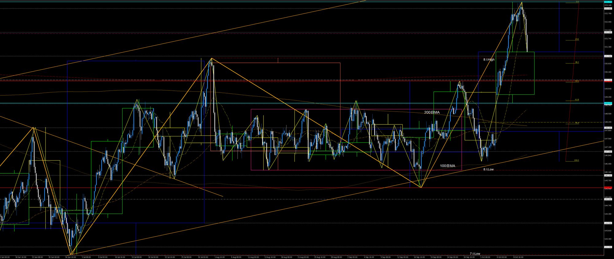 しかし、自民党新総裁に小泉氏を市場は織り込んでいた(先週の下落)ことで高市氏の当選はサプライズととられて200pipsの窓開けスタートとなってしまいました。