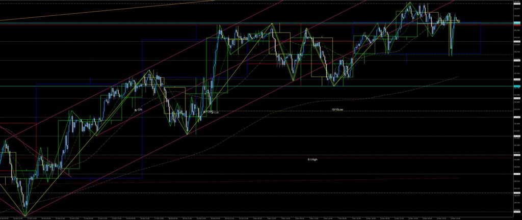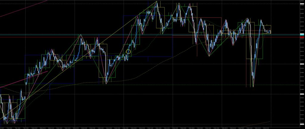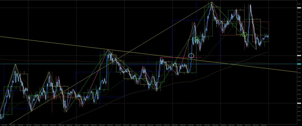 東京時間、戻り目形成待ち。欧州時間、火曜安へ急落したがタイミングがとれず見送り。NY時間、火曜安値でV字反発し急落波を全戻し。