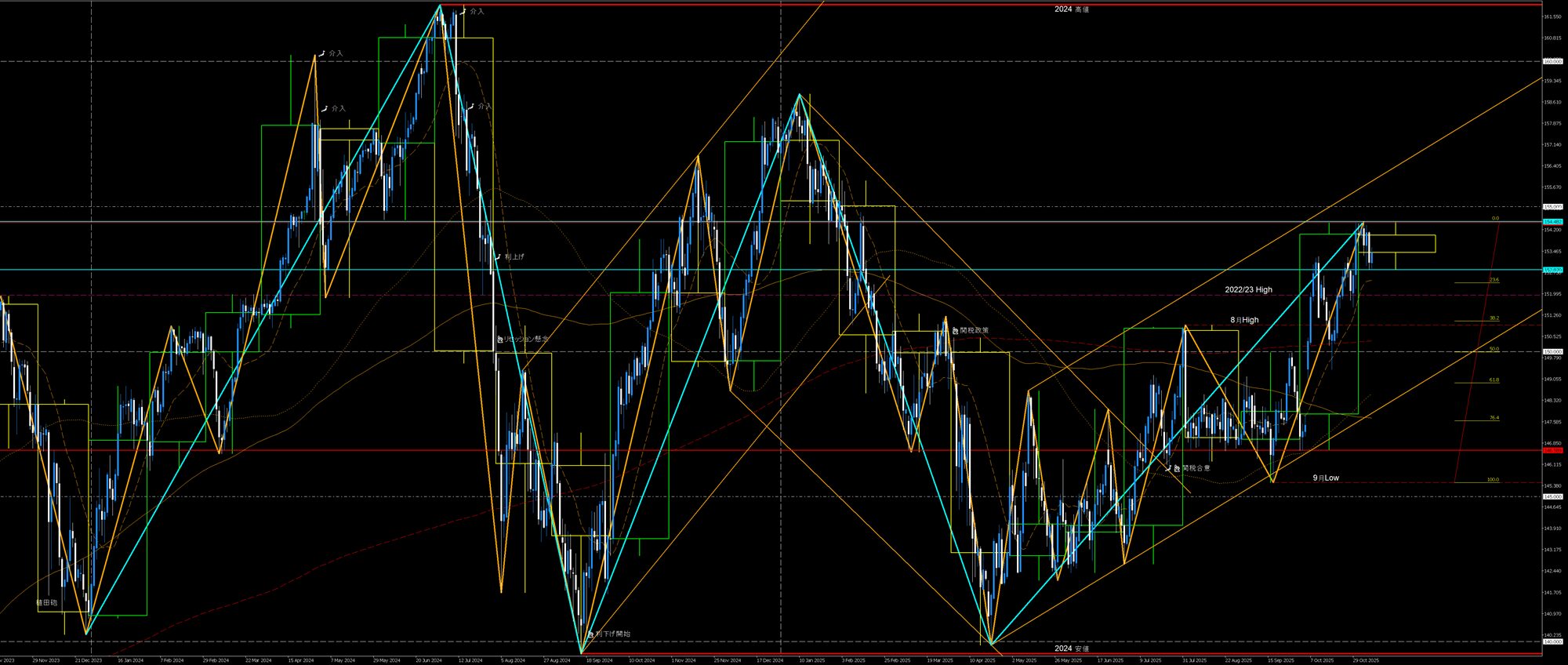 • 2週前安値押し目買いが節目155円に到達