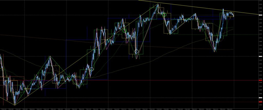 月曜にネックライン1.155(≒21日高値)をブレイクできなかったにもかかわらず安値を切上げたことから底堅さが示唆されました。その後押しを受けた水曜の上昇3波押し目買いが今週の中で最も有効なトレードです。