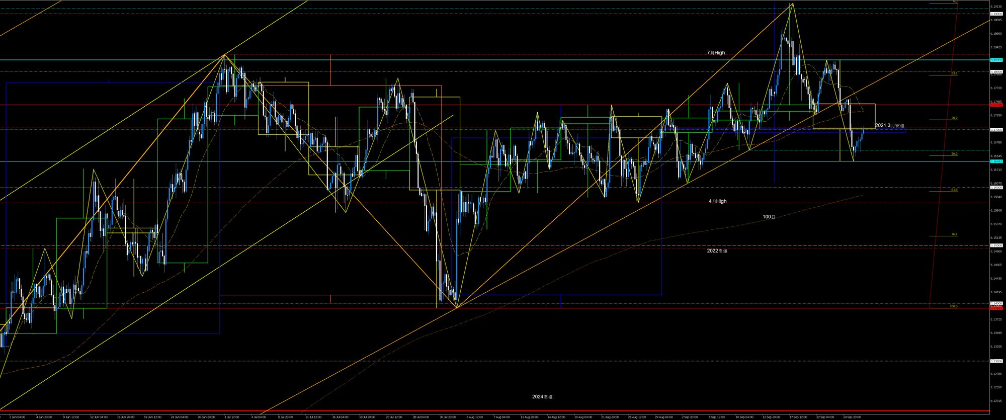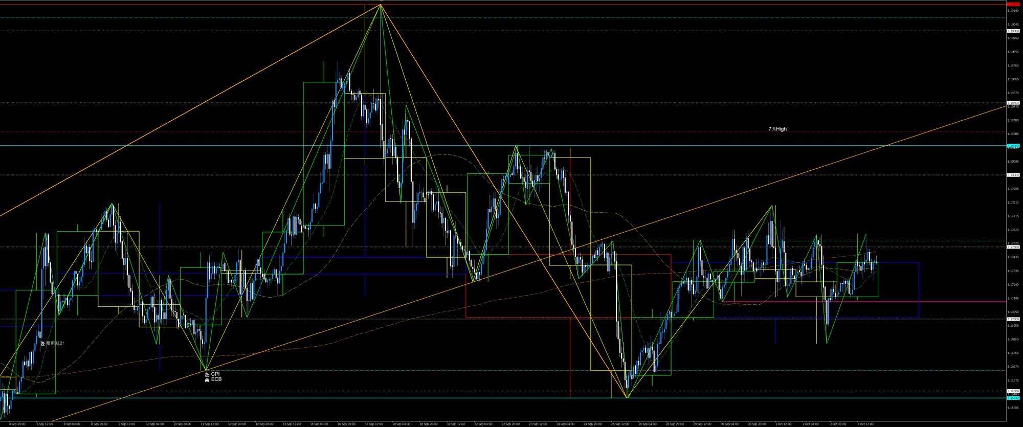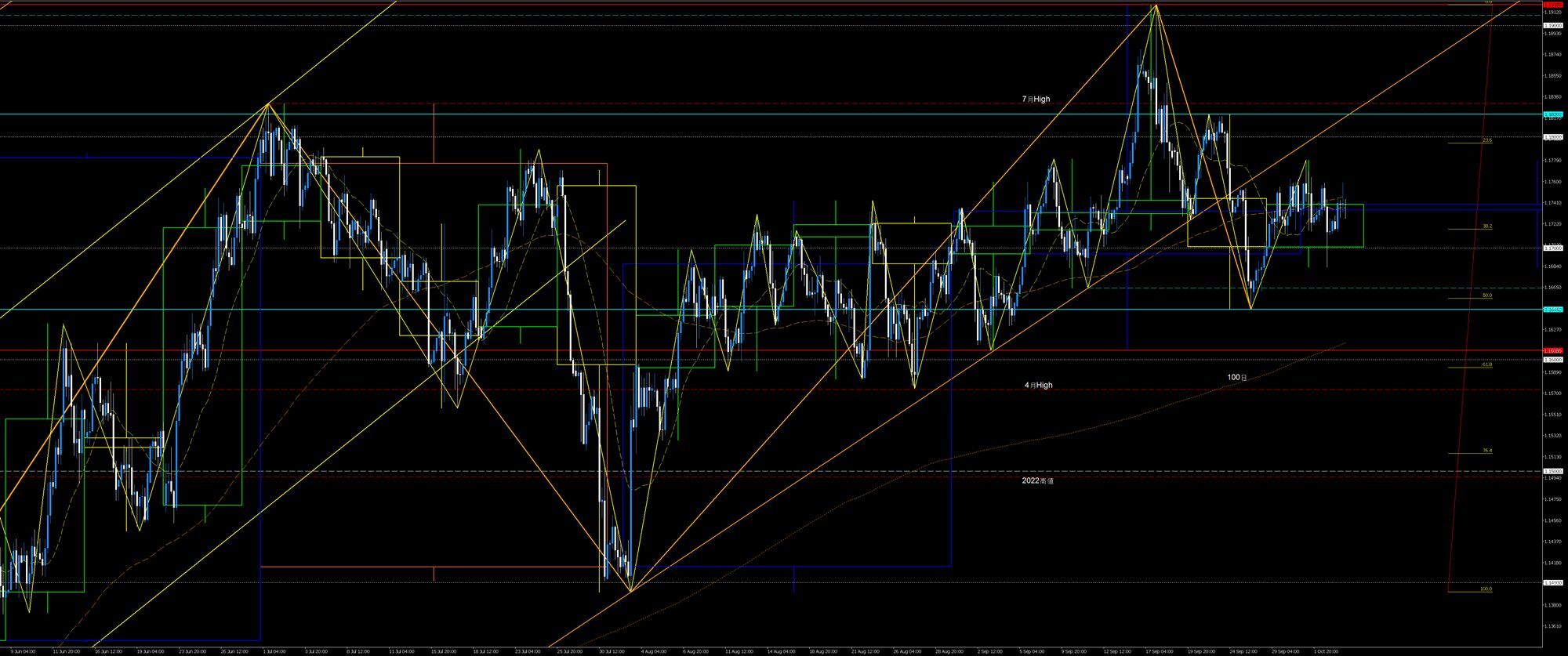 - 9/25高値試し(三尊天井肩ライン)から先週高値下降波を戻り売りショート