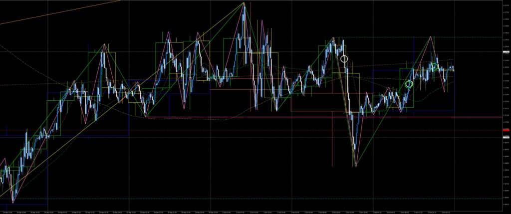 欧州時間、戻り目を崩しかけたがNY時間にかけて乱高下したためノートレード。