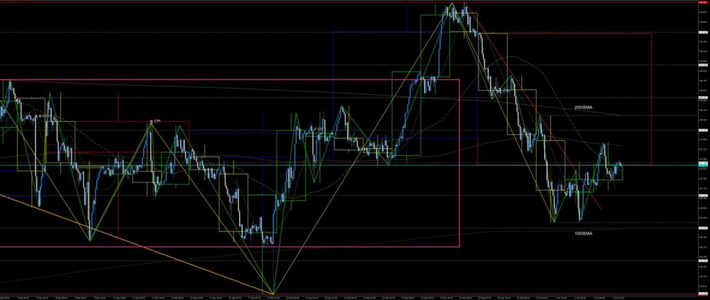 東京時間、前日安値割れでショート、欧州時間に200日MAに到達し148.5円で決済。NY時間、200日MAで小幅な値動き。