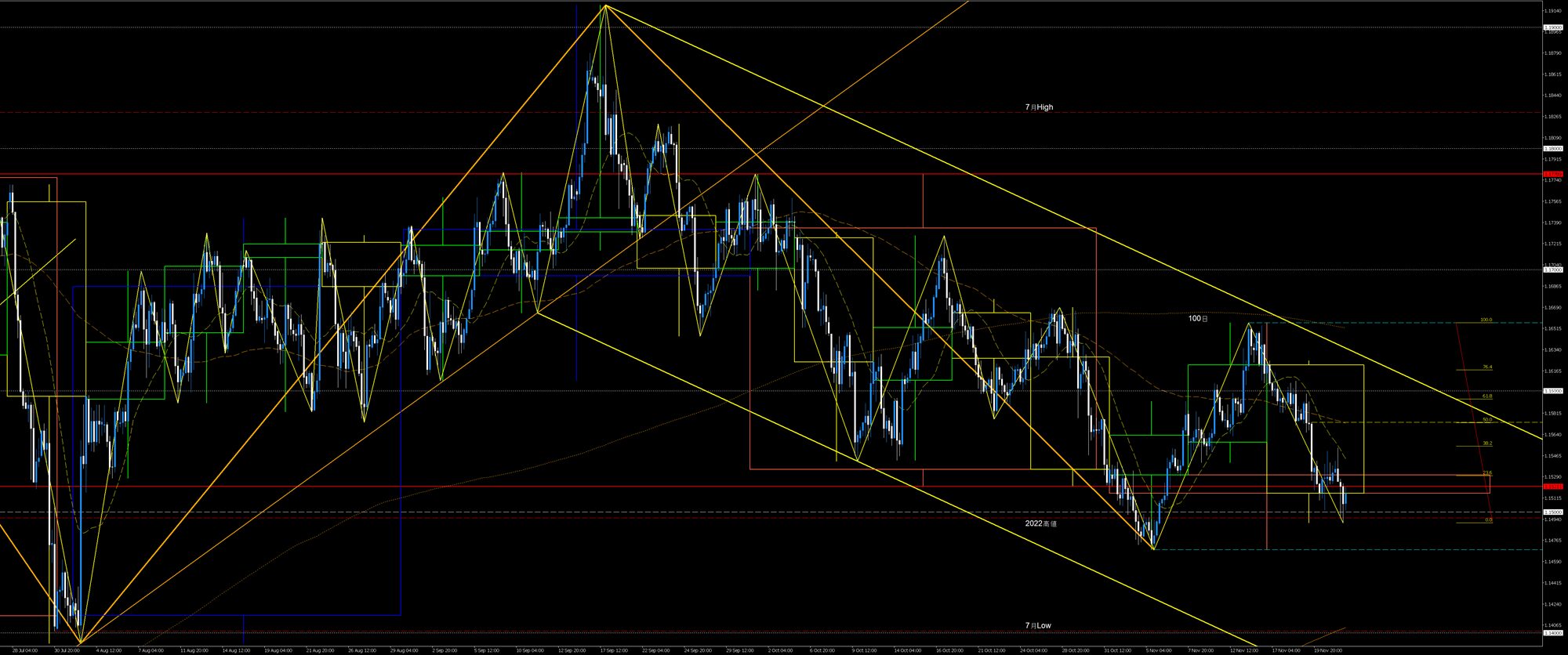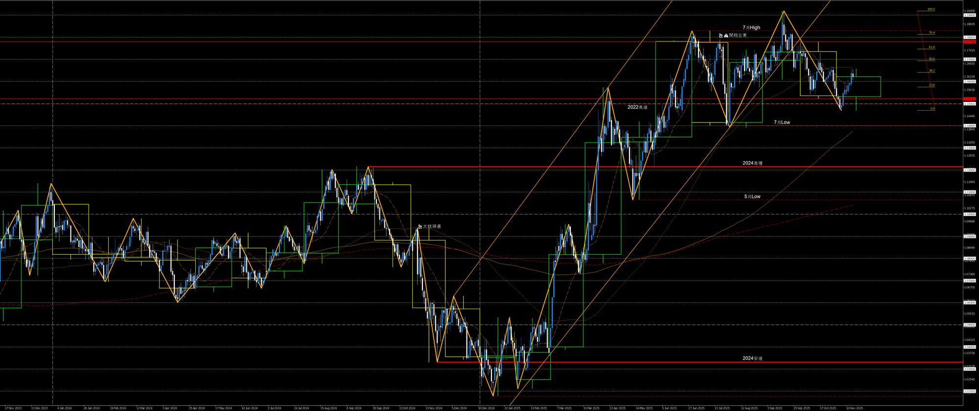 逆三尊を想定して2週前安値上昇波の押し目買いを狙っていましたが、1.15まで戻り売られる結果となりました。