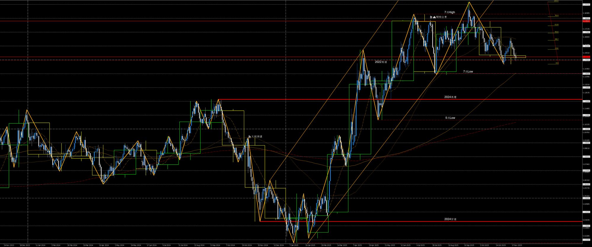 2週前安値上昇波の押し目を崩し1.15へ下落。