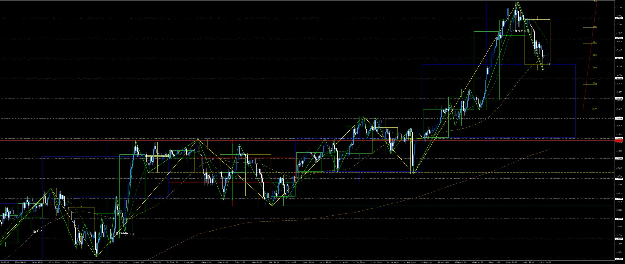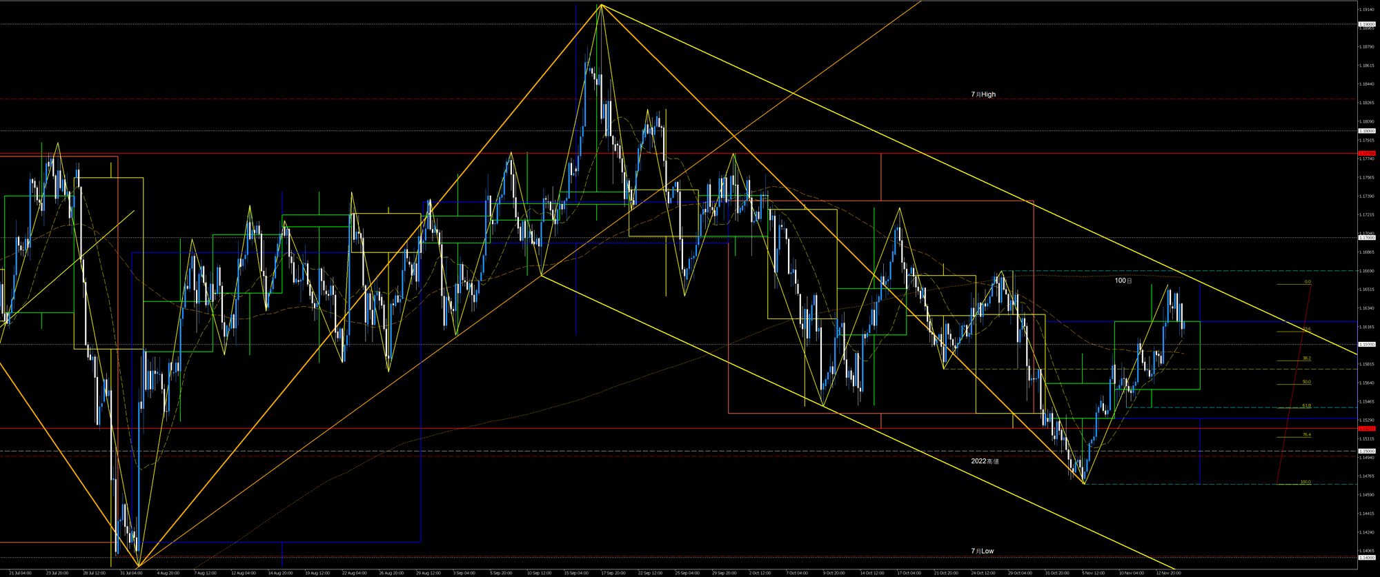 9月安値上昇波の押し戻しをメインシナリオとしていました。ただし、14日のピンバー出現を踏まえ上昇継続の可能性も考えてはいましたが、あっさりと155円をブレイクするとは思ってもみませんでした。