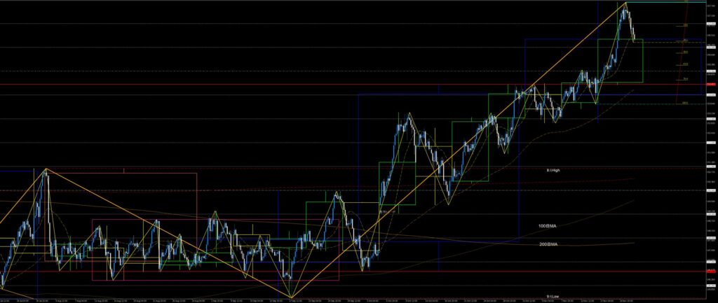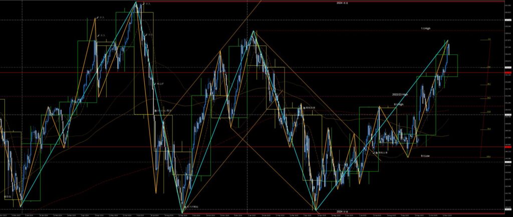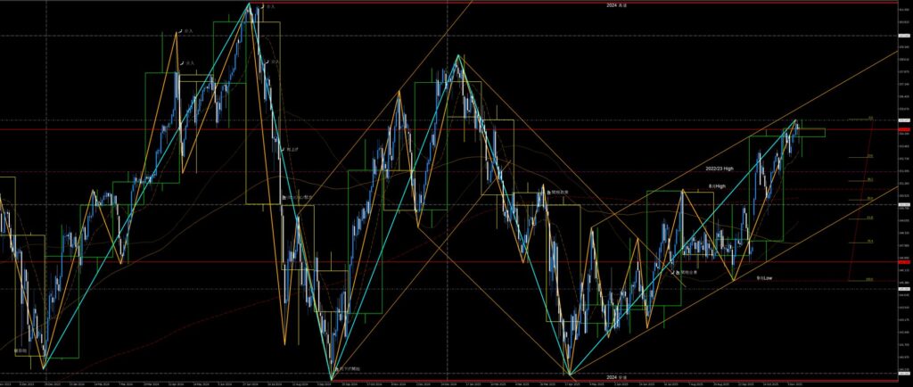 - 節目155円に到達し、9月安値上昇波が継続するかどうかの転換局面