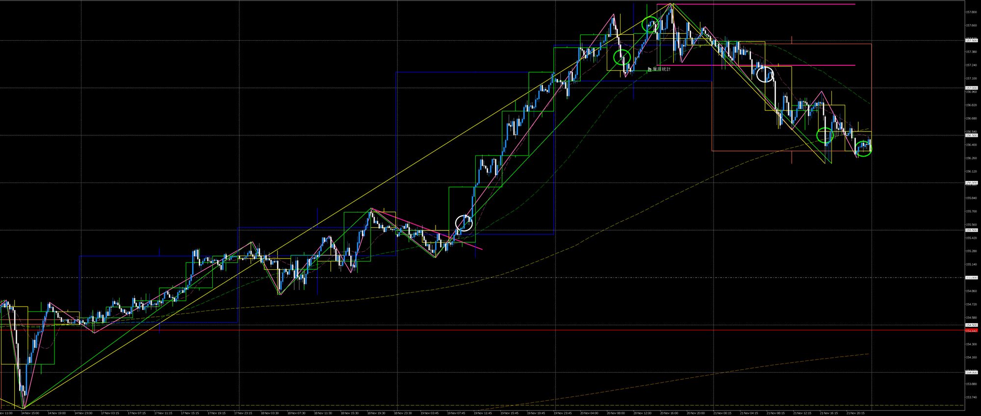 火曜に155円にサポートされ足場固め。火曜の足場に支えられ水曜に15分足SMA21に沿って158円へ急騰。